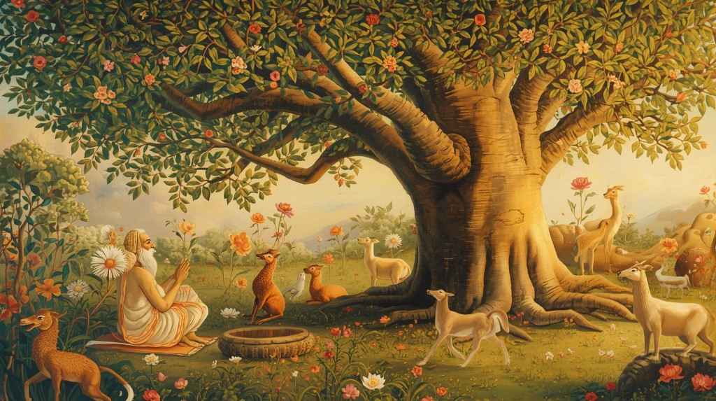 Śrimad Bhagavatam naucza: „Ludzie uganiają się za zadowalaniem zmysłów, nie wiedząc, że obecne ciało jest wynikiem przeszłych działań karmicznych… Dopóki ktoś jest zaabsorbowany przyjemnościami zmysłowymi, musi transmigrować z jednego ciała do innego” (Śrimad Bhagavatam 5.5.4–6). Dlatego tradycja wskazuje cztery filary dharmy: wyrzeczenie, czystość, miłosierdzie i prawdomówność, przeciwstawiając im dumę, rozwiązłość, hazard i fałsz jako przejawy bezbożności.