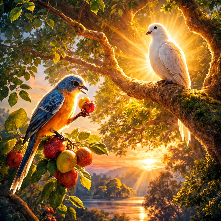 Różnicę między czystą świadomością a duszą doświadczającą skutków działania obrazuje przypowieść ze świętych tekstów zwanych Śruti. Mówi ona o dwóch ptakach siedzących na jednym drzewie. Jeden z nich spożywa owoce drzewa, a drugi jest jedynie świadkiem działania swego towarzysza. W ten sposób zobrazowana została różnica między boską rzeczywistością a duszą, która doświadcza skutków własnych czynów.